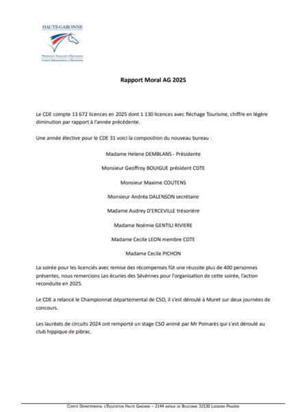 Vous trouverez sur cette page le rapport moral et financier 2025